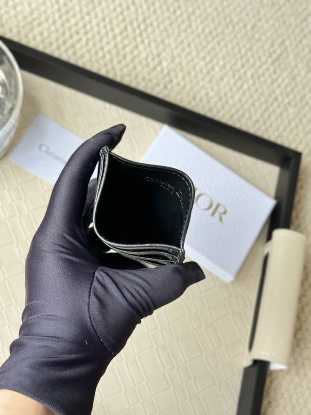 / 这款Dior卡夹高雅精致 采用牛皮精心制作。两侧各设3个卡槽,顶部设有1个卡槽,造型精巧玲珑。款号:Ch135 尺寸:10*8Cm