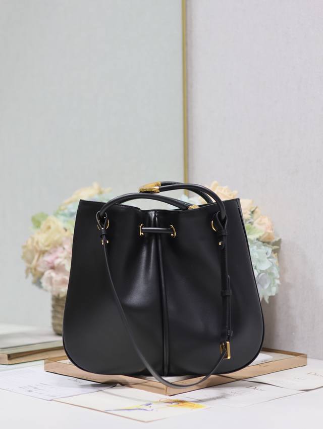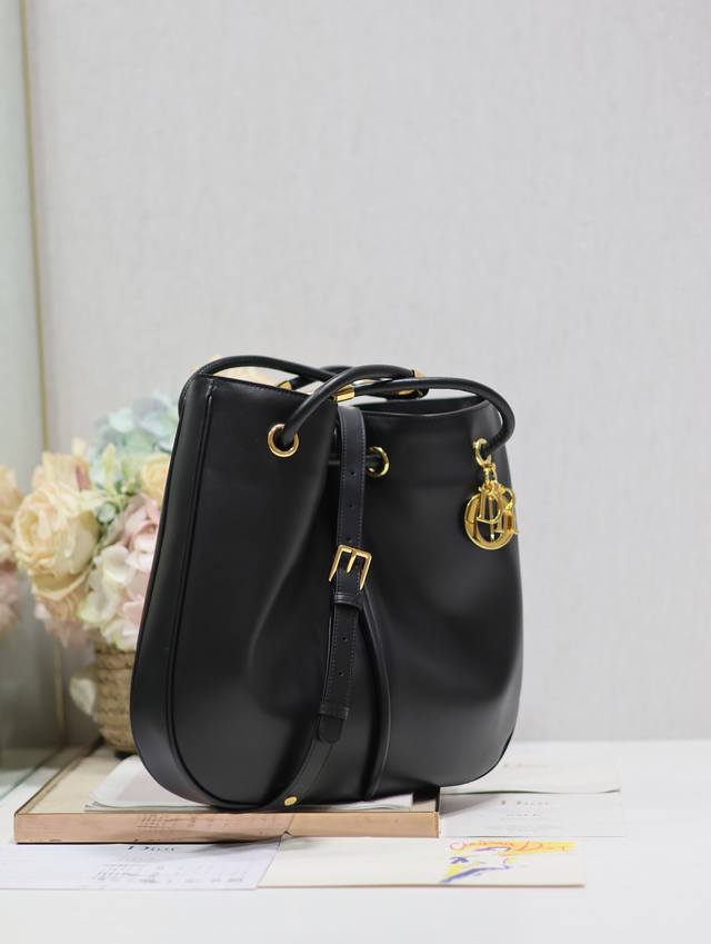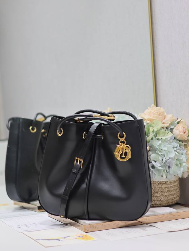 这款 Dior Nolita 手袋是二零二四秋季成衣系列新品,以时尚高雅的廓形重新诠释 Dior 的现代优雅气质。采用黑色外牛皮革 内羊皮精心制作,硬挺的顶部手柄搭配复古金色饰面金属装饰,点缀以滑动式 D.I.O.R. 吊饰,增添灵动之感。中号款式,抽绳开合,实用的内部设有一个插袋,搭配可调节、可拆卸的皮革肩带,可手提、肩背或斜挎。