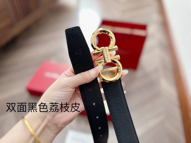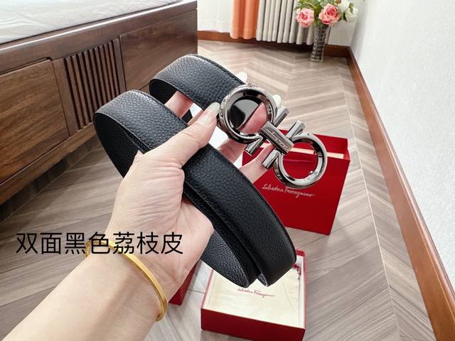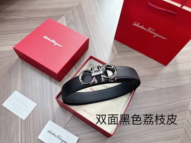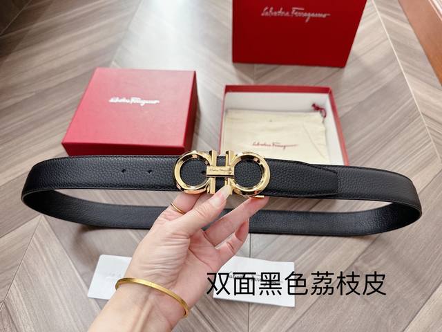 Salvatore Ferragamo菲拉格慕 3.5Cm高级定制款男士皮带 自行选择搭配 双面头层牛皮,双面黑色荔枝皮,一条顶2条。真材实料 很有质感 时尚经