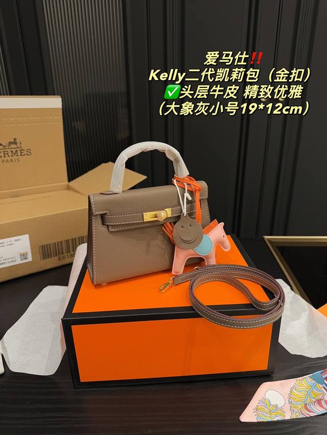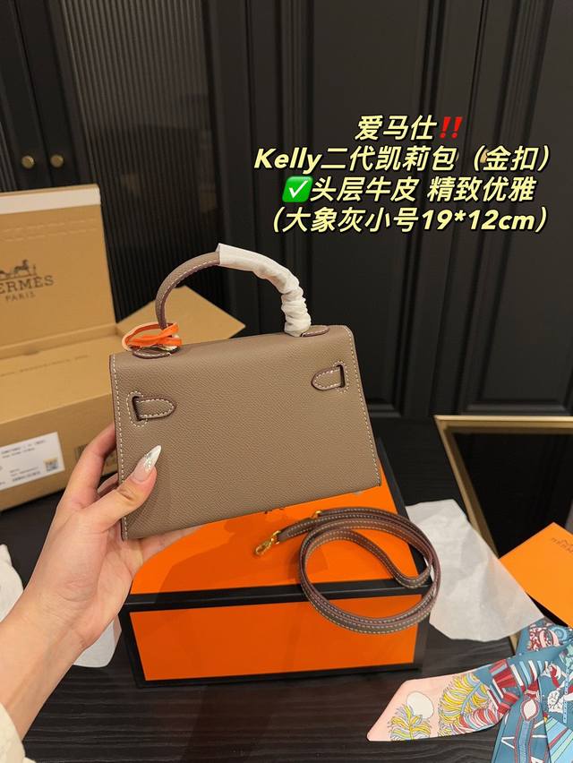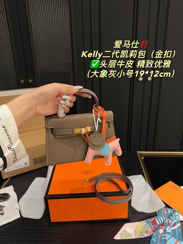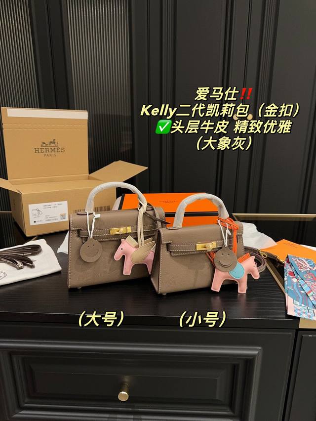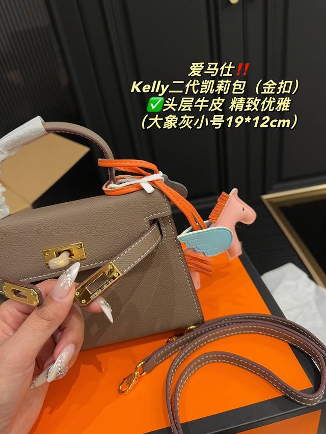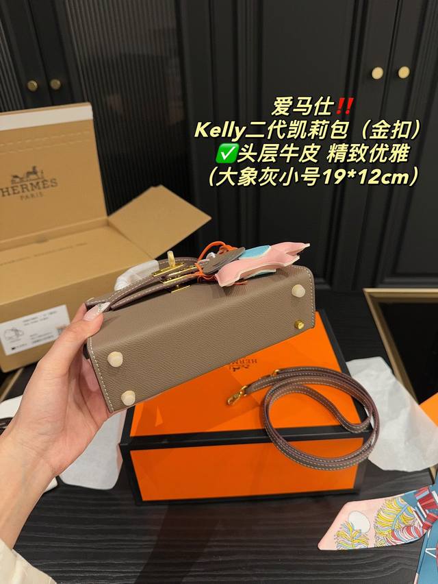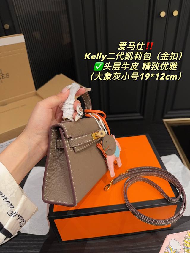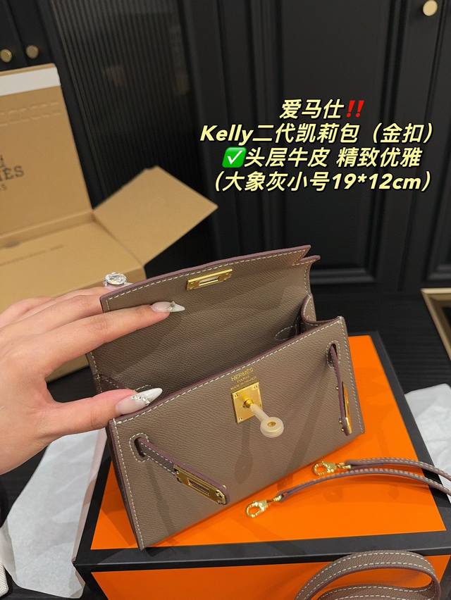 中号 全套包装尺寸22.14 小号 全套包装尺寸19.12 爱马仕kelly二代凯莉包 金扣 头层牛皮 高级感满满 经典中的经典 任何搭配都可轻松驾驭