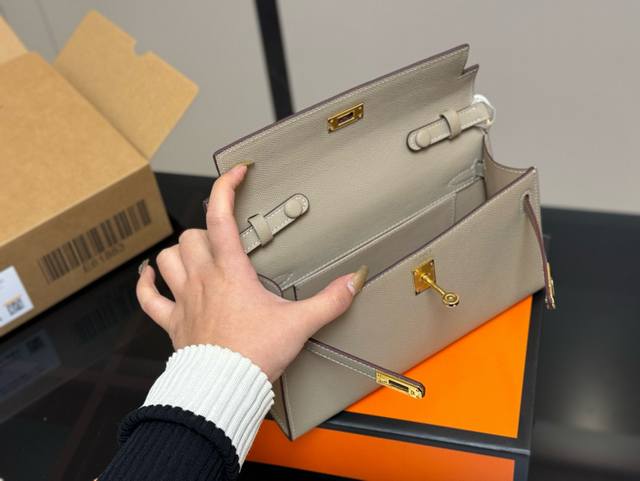 配飞机礼盒 Hermes.爱马仕kelly 凯莉包 背铂金包的季节来啦 手掌纹超有质感.金扣原版品质 尺寸: 22*8*16Cm