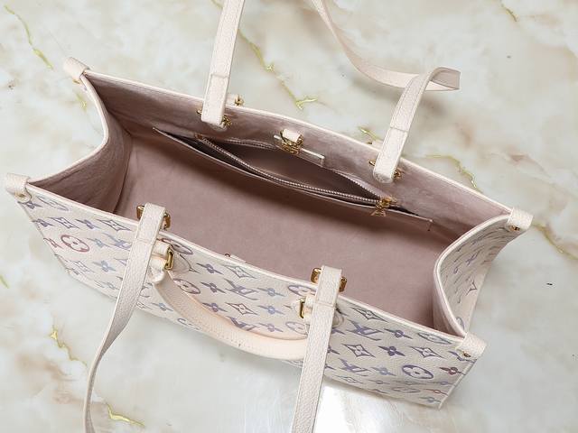 升级原版 M45495 M22770 本款 Onthego 中号手袋出自 Dream 系列,以典雅设计点亮各式造型。Monogram Empreinte 皮革结合数码印花工艺,巧妙呈现渐变水彩效果。耀目金属件与多重口袋丰富细节,纤长肩带方便斜挎。尺寸:35.0 X 27.0 X 14.0 厘米 长 X 高 X 宽