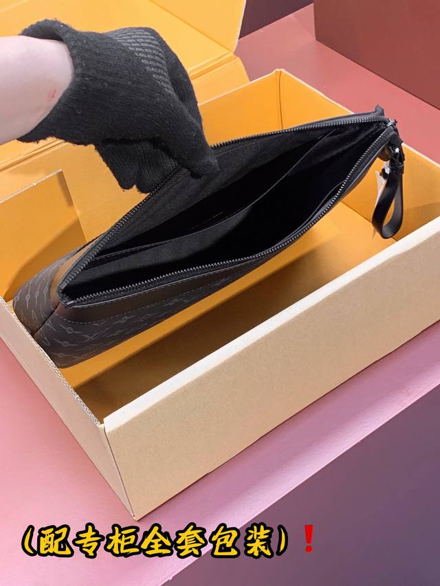 出厂价 升级版本m82545黑花!Pochette Voyage Souple 手拿包 Pochette Voyage Souple 手拿包取材柔软 Monogram Eclipse 涂层帆布,以圆润笔触勾勒经典 Pochette Voyage 手拿包线条,带来舒适随行体验。纤薄构型设有拉链隔层和磁扣后袋。32 X 21 X 8 厘米 长度 X 高 X 宽 。