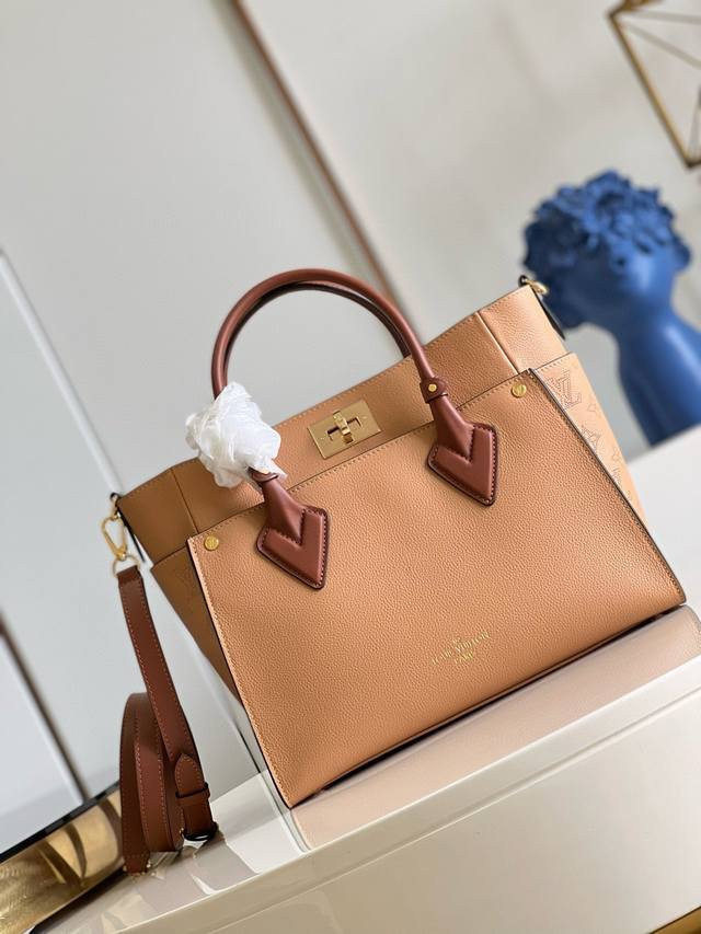 头层皮 顶级原单独家实拍m53826浅黄 M53823 On My Side 手袋为细粒面小牛皮拼接 Nappa Softy 皮革,含蓄点缀 Monogram 簇绒。方形设计带来宽敞空间,一举容纳日常所需。尺寸:30.5 X 24.5 X 14.0 Cm