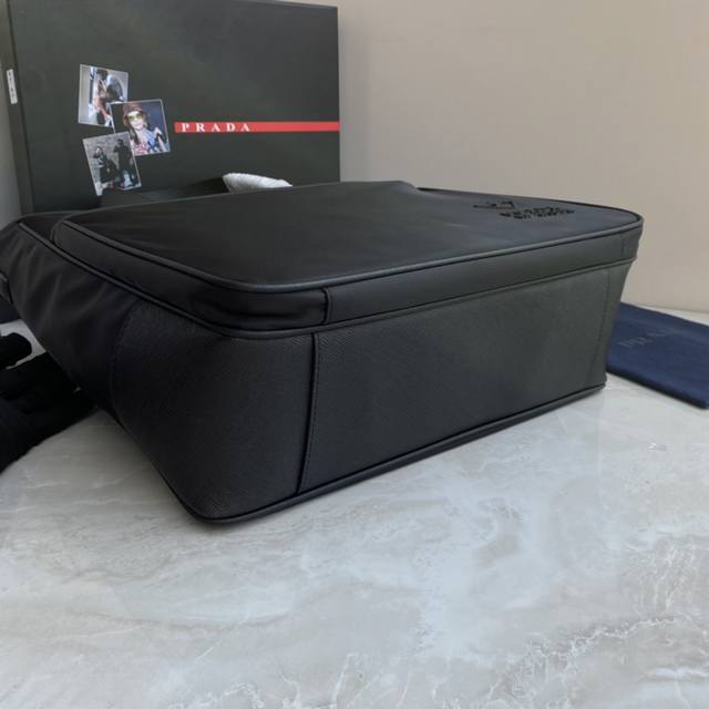 P家新款男包,2Vg032 胶唛 原单货,采用进口尼龙和Saffiano皮革饰边及提手 ,抛光钢质配件和黑钛拉链,可拆卸可调式肩带,格层多多,男士们必备,长35X高34Cmx10Cm