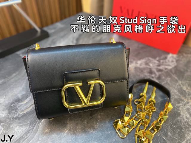 / 配折叠盒 Valentino 华伦天奴stud Sign手袋 优雅摩登的vlogo标识 标志性铆钉与金属链条大胆碰撞 不羁的朋克风格呼之欲出 配可拆卸两条肩带!