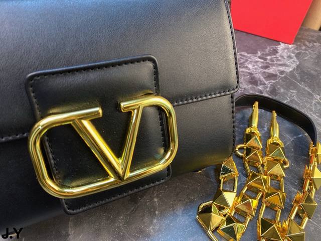 配折叠盒 Valentino 华伦天奴stud Sign手袋 优雅摩登的vlogo标识 标志性铆钉与金属链条大胆碰撞 不羁的朋克风格呼之欲出...