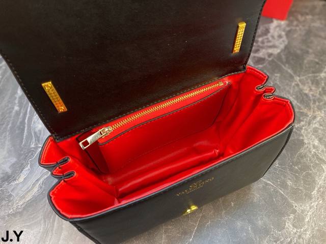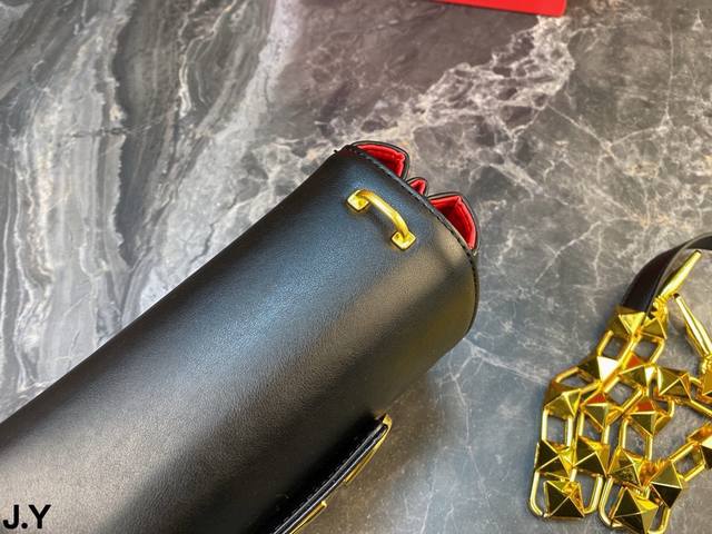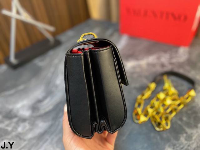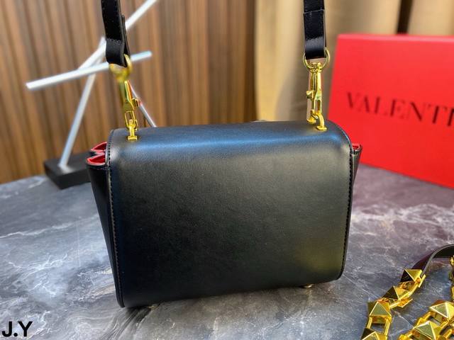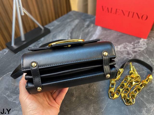 配折叠盒 Valentino 华伦天奴stud Sign手袋 优雅摩登的vlogo标识 标志性铆钉与金属链条大胆碰撞 不羁的朋克风格呼之欲出 配可拆卸两条肩带!